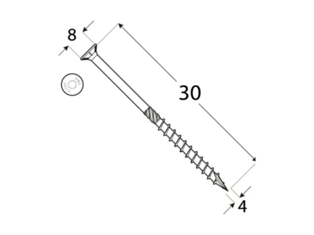 - Koniec štiepeniu dreva Unikátna rezná špička a pílový závit fungujú ako malý vrták. Vlákna dreva sa pri vniknutí nedeformujú tlakom, ale sú prerezané. To znamená, že môžete skrutkovať priamo (bez predvŕtania) a blízko okrajov dosiek bez obavy, že drevo praskne.