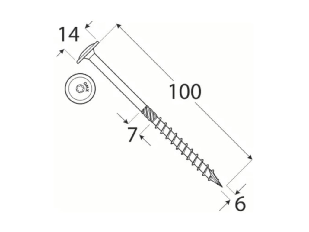 - Šetrnosť k konštrukcii Napriek svojej dĺžke a hrúbke vrut neničí drevo. Rezná špička spoľahlivo prereže vlákna, takže aj pri montáži blízko okrajov trámov nehrozí ich rozštiepenie.