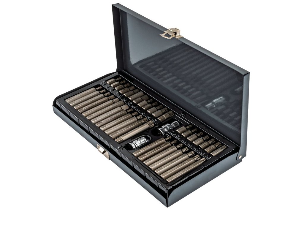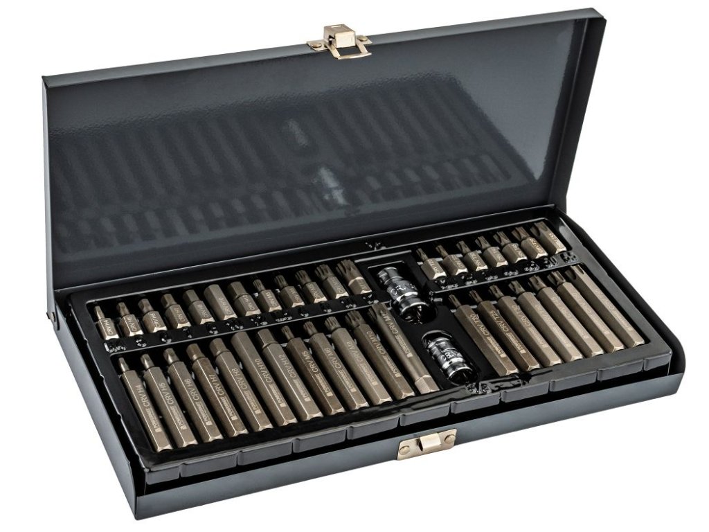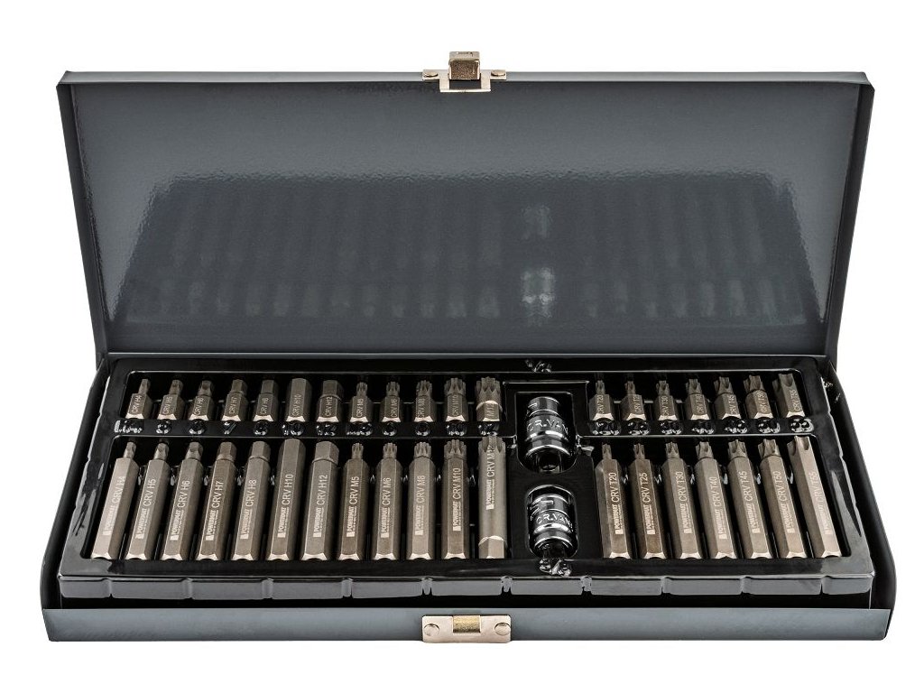 - Profesionálna 40-dielna sada bitov HEX, TORX a SPLINE z CrV ocele.